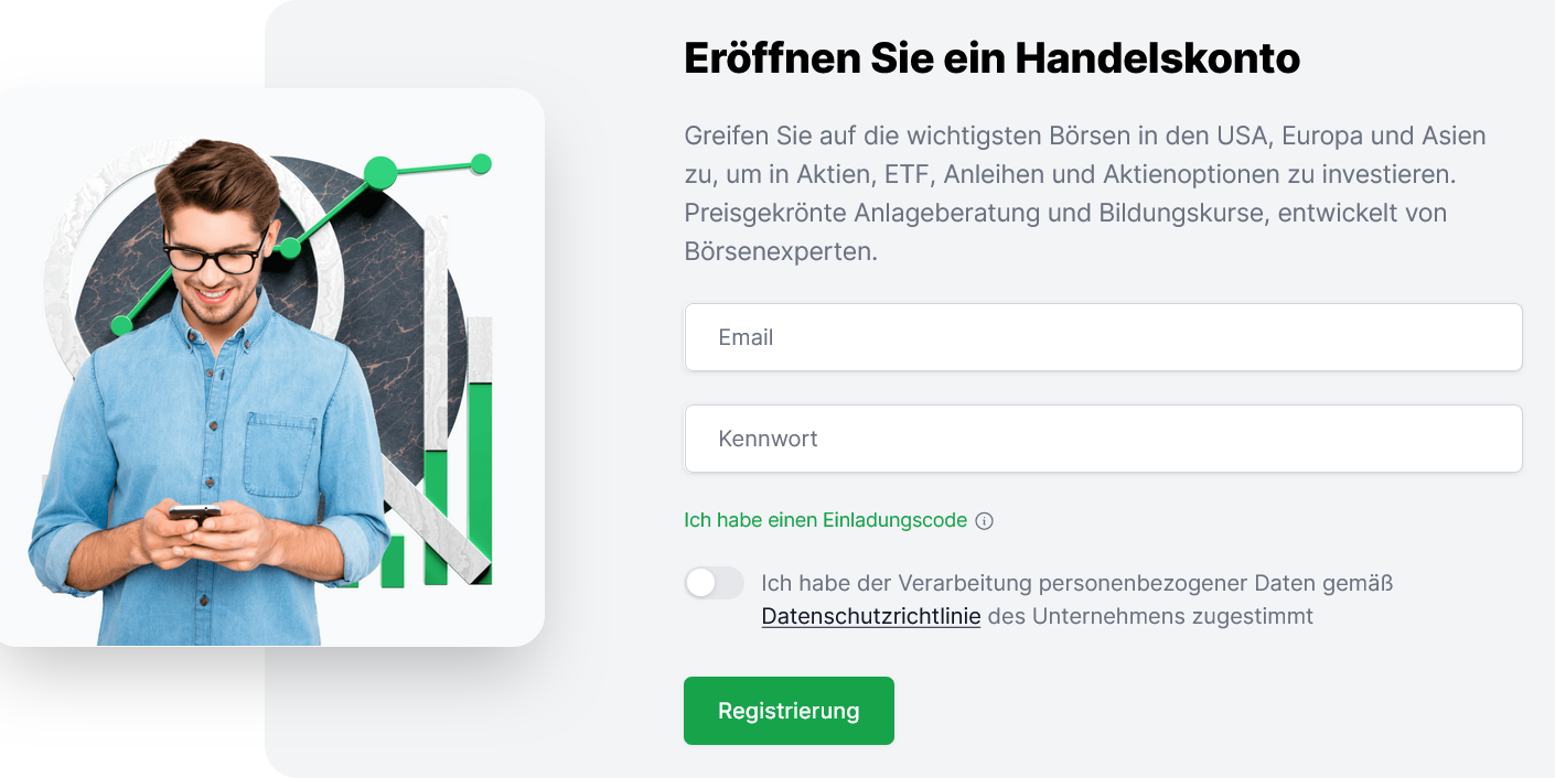 - Auf der Homepage auf „Konto eröffnen“ klicken