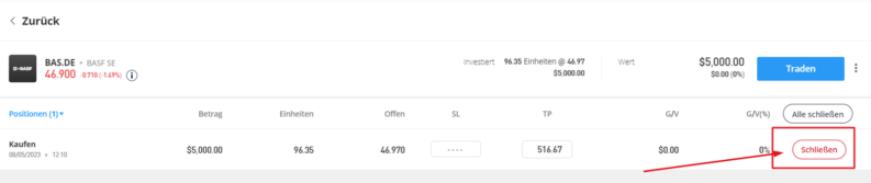 Das Schließen bzw. Verkaufen von Aktienpositionen ist bei eToro unproblematisch.