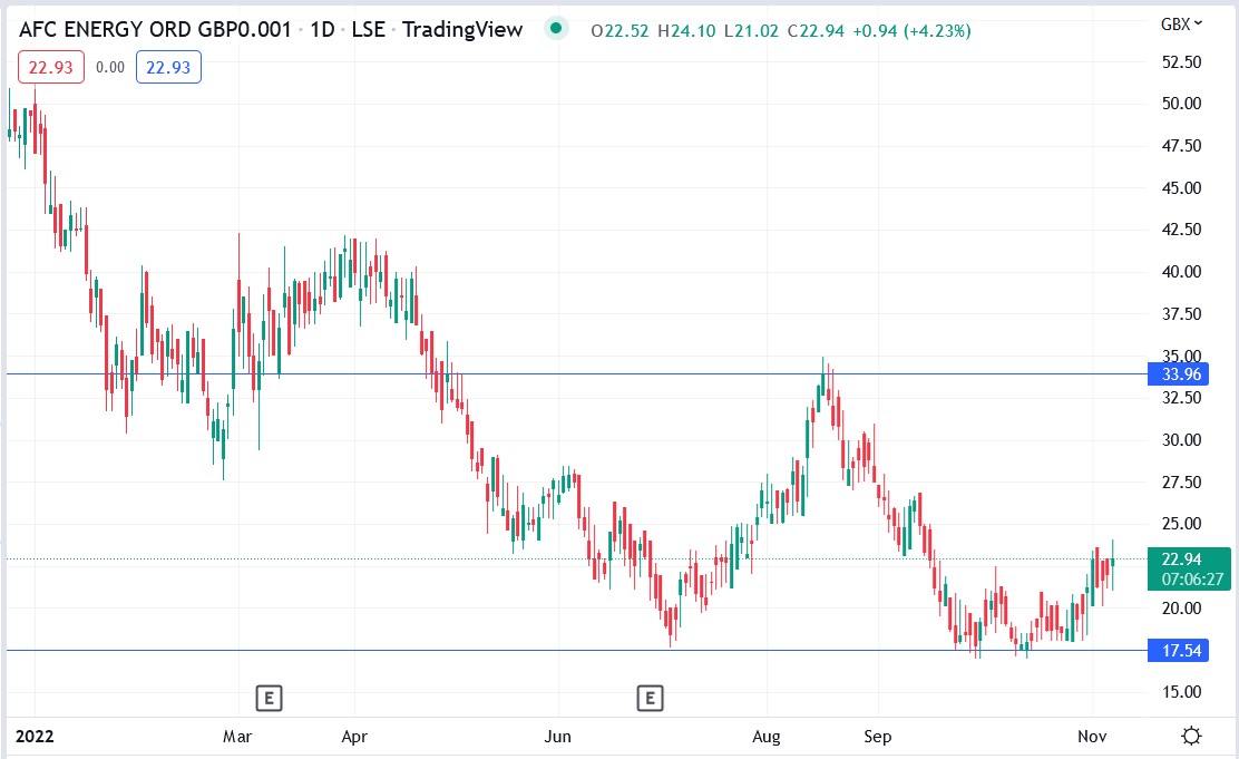 The AFC Energy share price rose 9.54% to trade at 24.10p, rising from Friday’s closing price of 22.00p.