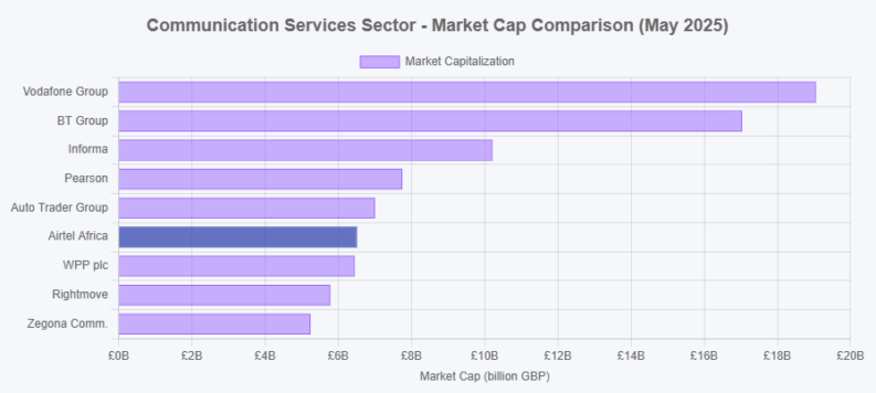 Compared to its peers in the communication services sector, Airtel Africa holds a competitive position. While Vodafone Group and BT Group boast significantly larger market capitalizations, Airtel Africa is closing the gap on companies like Informa and Pearson.