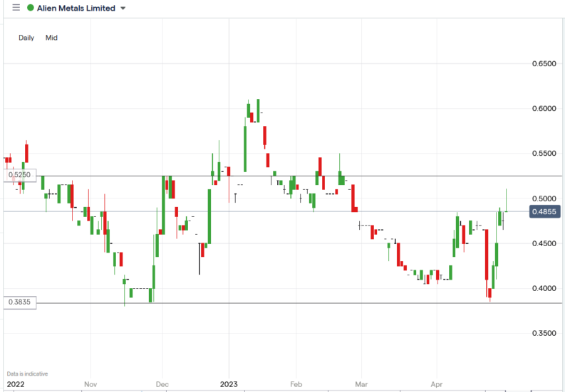 The Alien Metals share price spiked 7.58% higher to trade at 0.5110p, from Thursday’s closing price of 0.4750p.