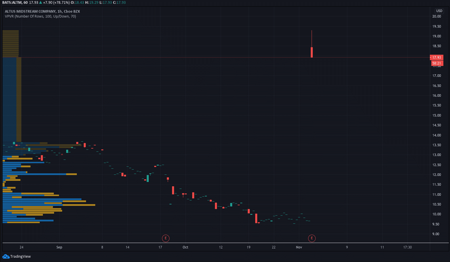 Altus Midstream (NASDAQ: ALTM) shares have surged after the company released its third-quarter earnings after the close on Wednesday.