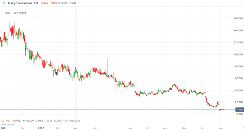 Argo Blockchain (LON: ARB) shares are down another 4% Tuesday, adding to its share price losses over the past year or more, following the release of its October operational update.