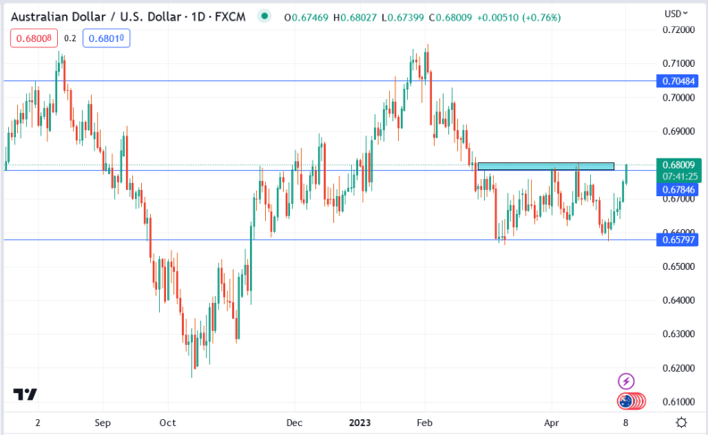 The AUDUSD currency pair was trading over 51 pips higher today, leading the pair to break above a crucial resistance zone that has been in place since late February. The break higher is a strong indicator that we could see a stronger Aussie in future.