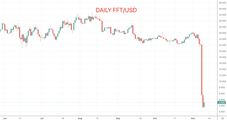 The FTX native token has plunged further again and is now trading at only 12% of its value from a week ago.