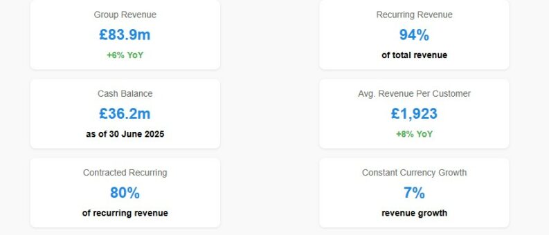 The update highlights the company's continued focus on recurring revenue streams, a key strength for SaaS businesses, with 94% of revenue classified as recurring or repeating, of which 80% is contractually recurring. The average revenue per customer (ARPC) also saw a healthy increase of 8% on a constant currency and normalized basis, reaching £1,923 per month.