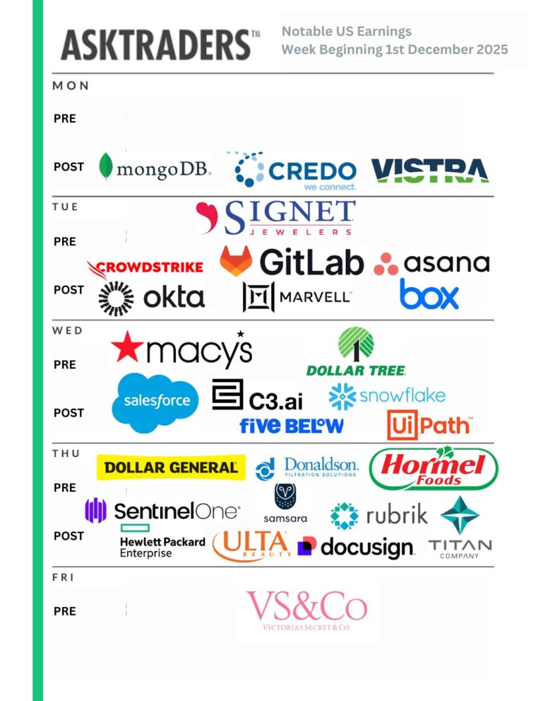 Earnings season may be slowing down, but there’s still plenty on deck for traders watching tech, AI, retail, and cybersecurity names. The week starts quietly before building into a heavy slate of high-growth and enterprise software names that could spark volatility.
