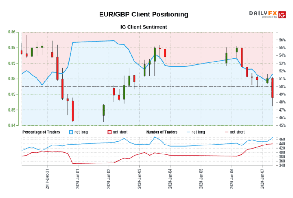 Client Sentiment reports from DailyFX and IG support the idea that traders have been taking positions that bank on a pragmatic Von der Leyen delivering on a deal — one that might favour holders of sterling. Back data shows net shorts that were taken over the year-end and again between 6th–7th January.
