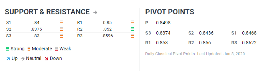 The 12-month low of 0.83290 is another support/target level to hold in mind.