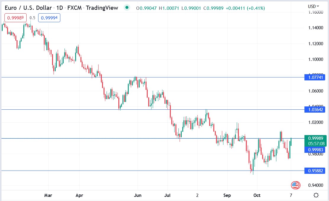 - The single currency is facing stiff resistance at the critical 1.00 parity level.