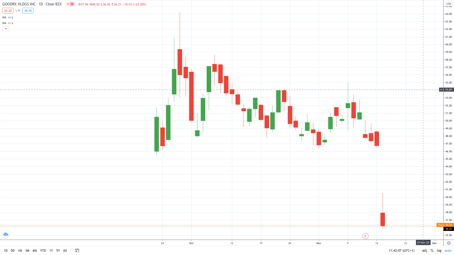 Shares of GoodRx Inc (NASDAQ: GDRX) plunged 22.5% on Wednesday after e-commerce giant Amazon announced the launching of Amazon Pharmacy.