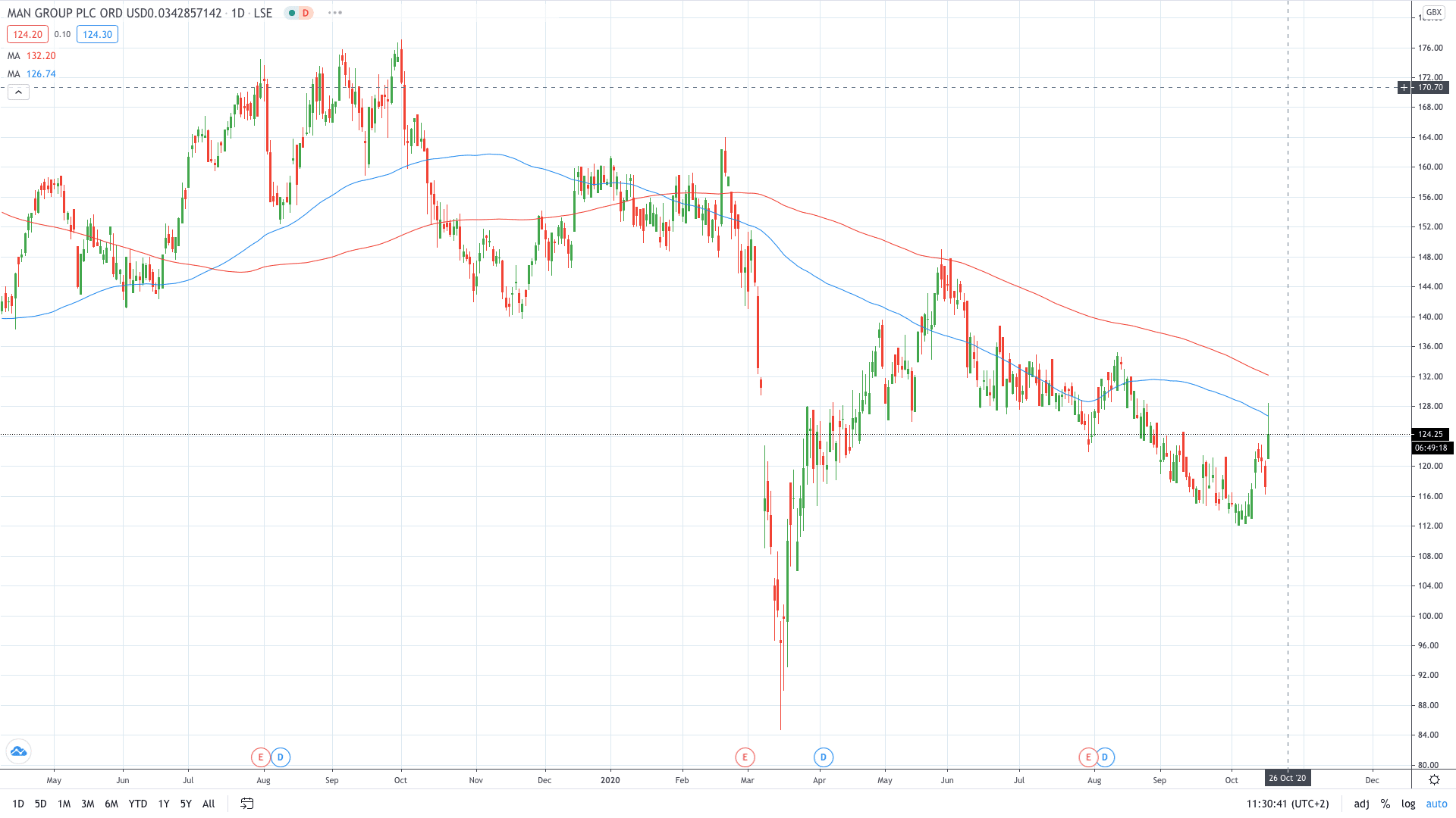 Man Group share price rose over 9% to 128.45p, the highest EMG traded since August.