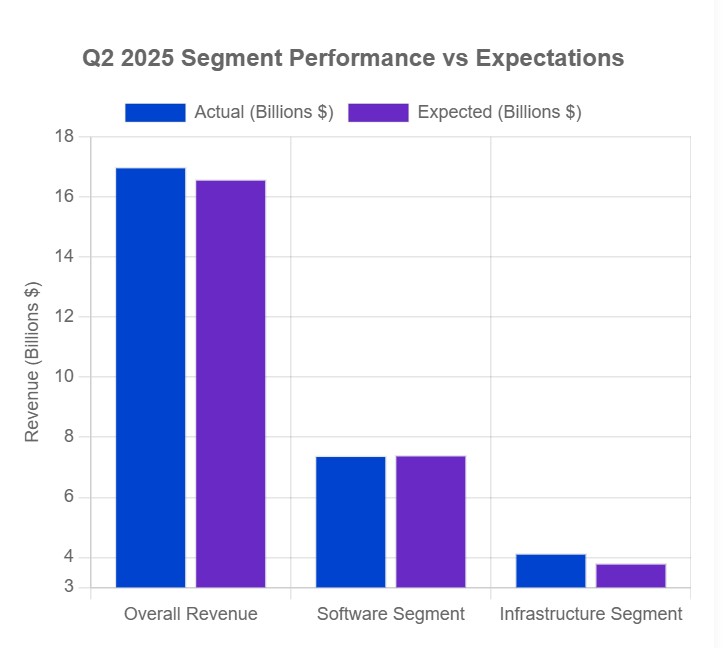 IBM's Q2 performance highlighted the strength of its Infrastructure segment, which includes AI-enhanced mainframes. Revenue from this segment reached $4.14 billion, exceeding projections of $3.81 billion. However, the software segment's slight miss, attributed to clients reallocating investments toward AI-specialized mainframes, tempered investor enthusiasm.