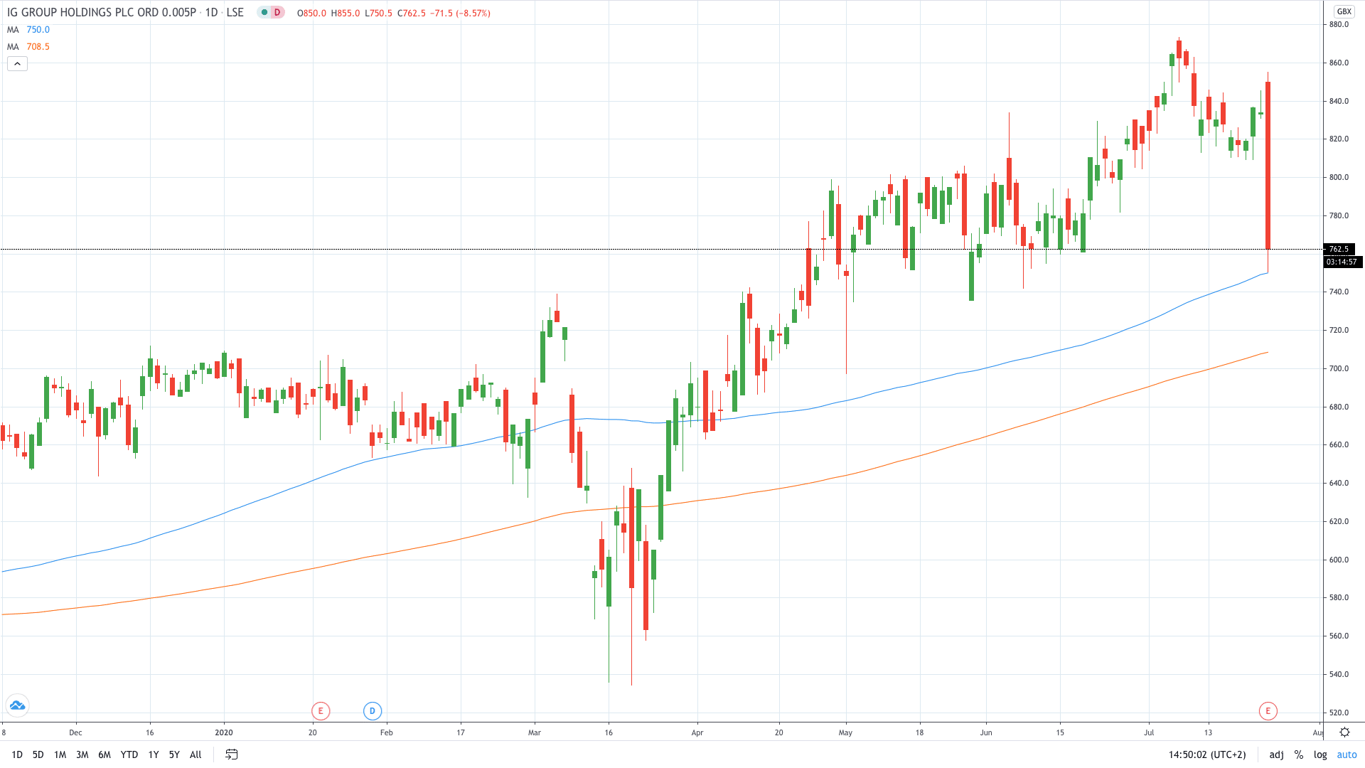 IG share price tumbled 9%, most likely on profit-taking activities. This month, IG stock price hit the highest levels recorded since September 2018.
