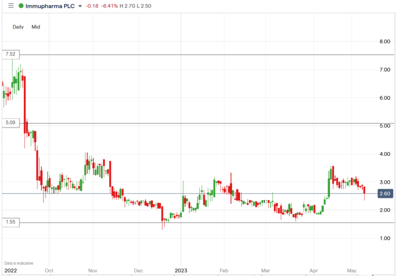 The ImmuPharma share price fell 18.4% to trade at 2.35p, from Wednesday’s closing price of 2.88p.