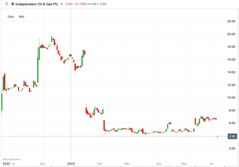 The IOG share price plunged 46.36% to trade at 3.54p, from Tuesday’s closing price of 6.60p.