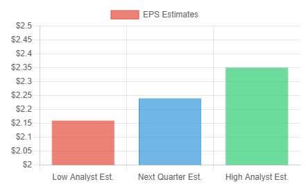 Analysts are forecasting a $2.24 EPS for the quarter, a decrease from the $2.66 reported in the same quarter last year, alongside revenue of $2.19 billion.