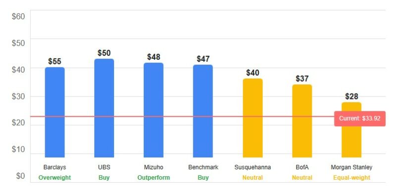 With sentiment high, an eye on risk is needed with the stock having bumped into resistance at $34.