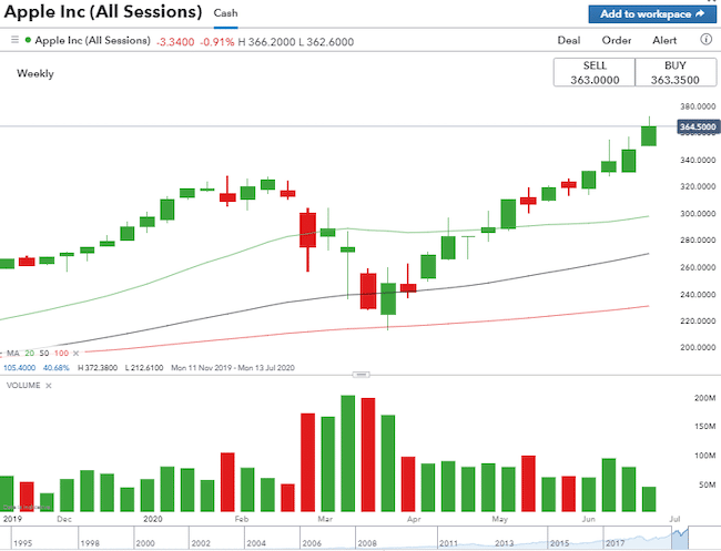 Apple – Weekly candles – Nov 2019 – June the 24th 2020