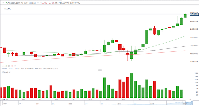 Amazon – Weekly candles – Nov 2019 – June the 24th 2020