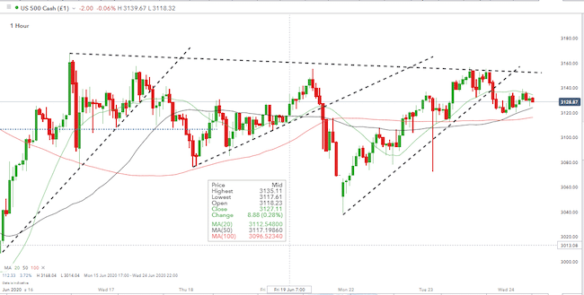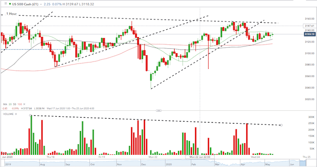S&P 500 index – 1H candles – 15th – 24th June 2020