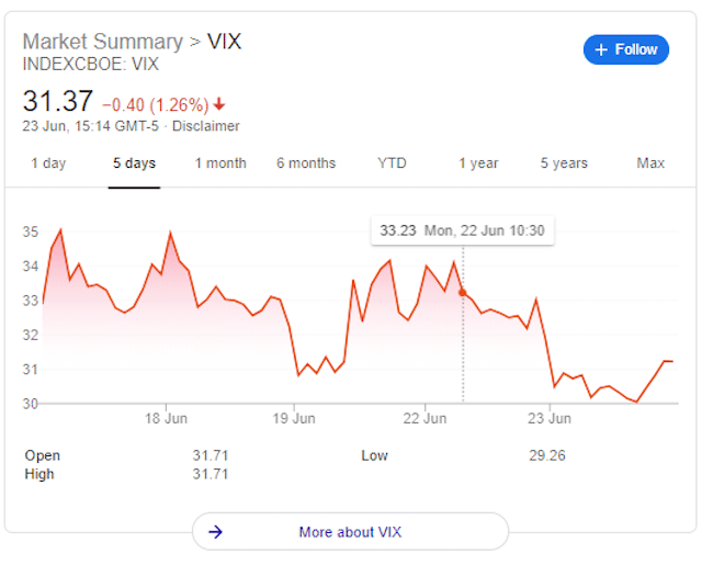 Short positions will be looking for support from the CBOE VIX index. That has yet to materialise.