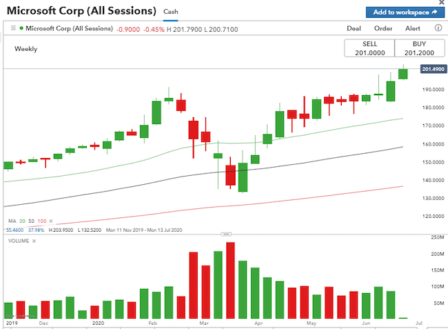 Microsoft – Weekly candles – Nov 2019 – June the 24th 2020