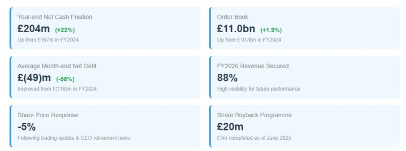 “The Group has performed strongly in FY25, and is delivering well against its long-term sustainable growth plan,” commented outgoing Chief Executive Andrew Davies. “This performance, alongside the continued growth of our high-quality order book and recapitalization of our Property business, supports the recent upgrade to our long-term margin targets and underpins the creation of strong and sustainable value for shareholders.”