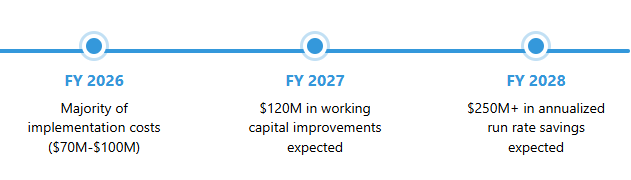 The restructuring also aims to generate $120 million in working capital improvements by the end of fiscal 2027.