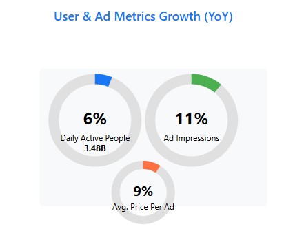 Ad impressions across Meta's Family of Apps increased by 11% year-over-year, while the average price per ad rose by 9%. These figures demonstrate the continued demand for advertising on Meta's platforms and the company's ability to monetize its user base effectively.