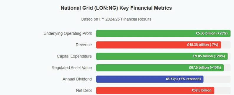 National Grid shares (LON:NG.) are trading strongly today, up 3.69% after releasing an impressive set of full-year financial results for the fiscal year ending March 31, 2025.