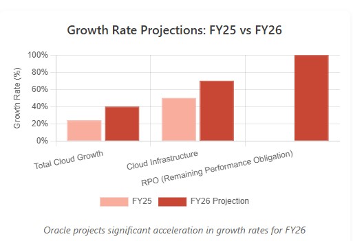 The engine driving this optimism is Oracle's cloud business. Catz forecasts total cloud growth, encompassing both applications and infrastructure, to leap from 24% in FY25 to over 40% in FY26. Even more ambitious is the projection for Oracle Cloud Infrastructure (OCI), which is expected to see its growth rate climb from 50% to over 70% in the same period.