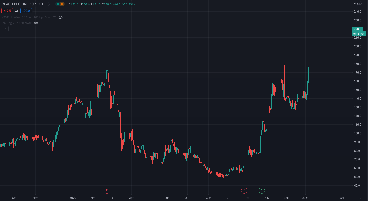 Shares of UK national and regional news publisher Reach plc (LON: RCH) are on the rise on Friday after the company said it expects underlying operating profit for 2020 to be ahead of market expectations between £130-135 million.