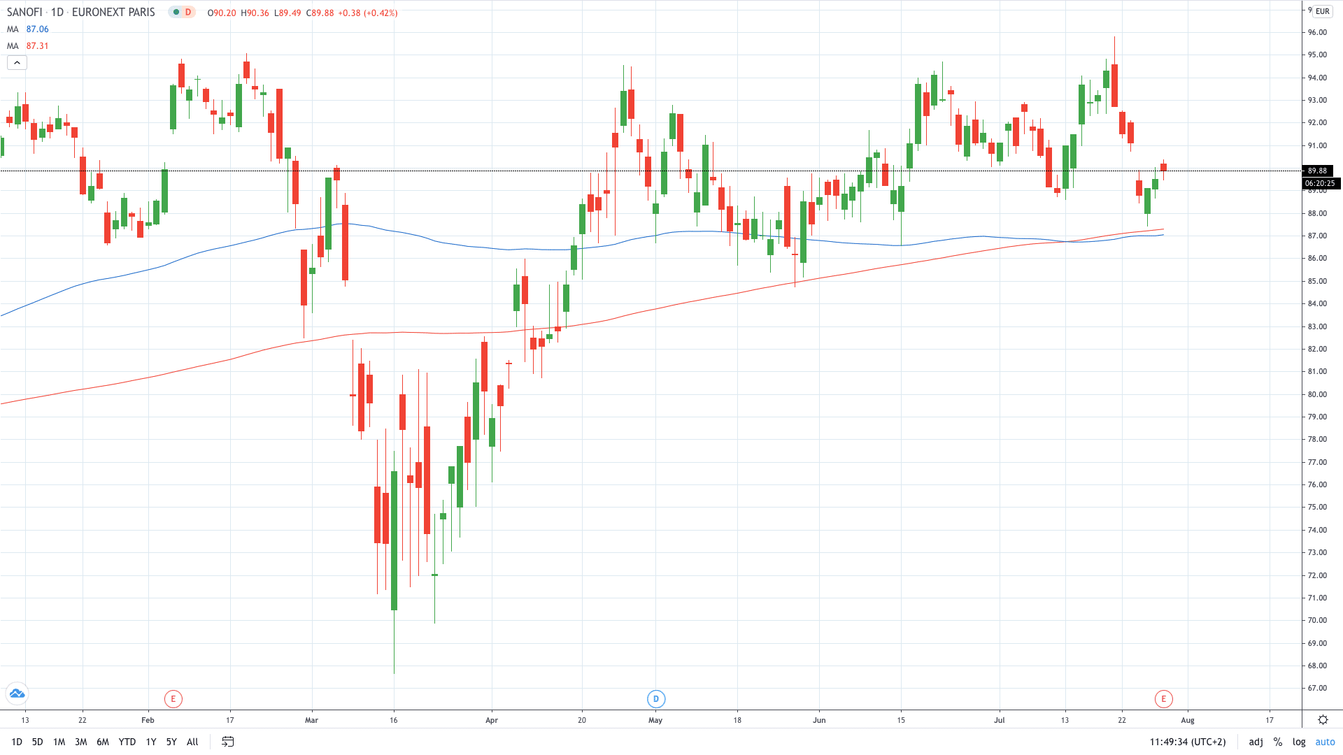 Sanofi share price is trading around the 90.00 mark. Last week, the share price surged to print a 5-year high.
