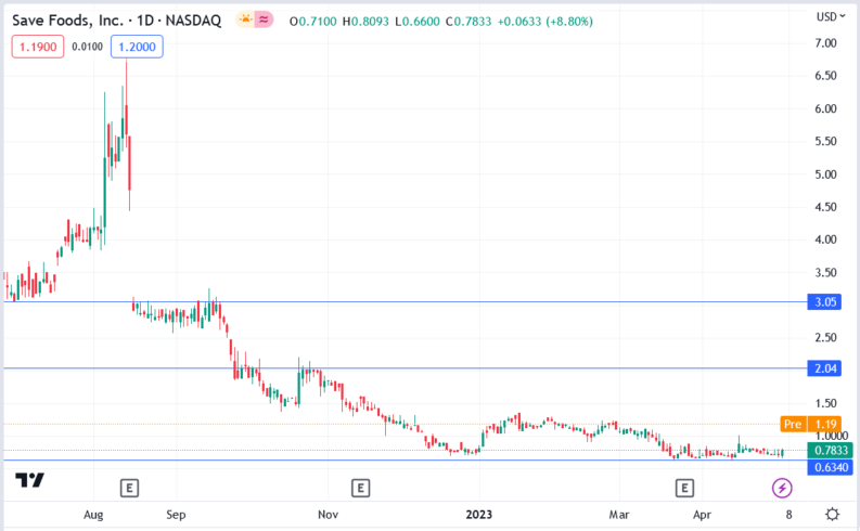 The Save Foods (SVFD) stock price surged 51.92% to trade at $1.19, from Thursday’s closing price of $0.78.