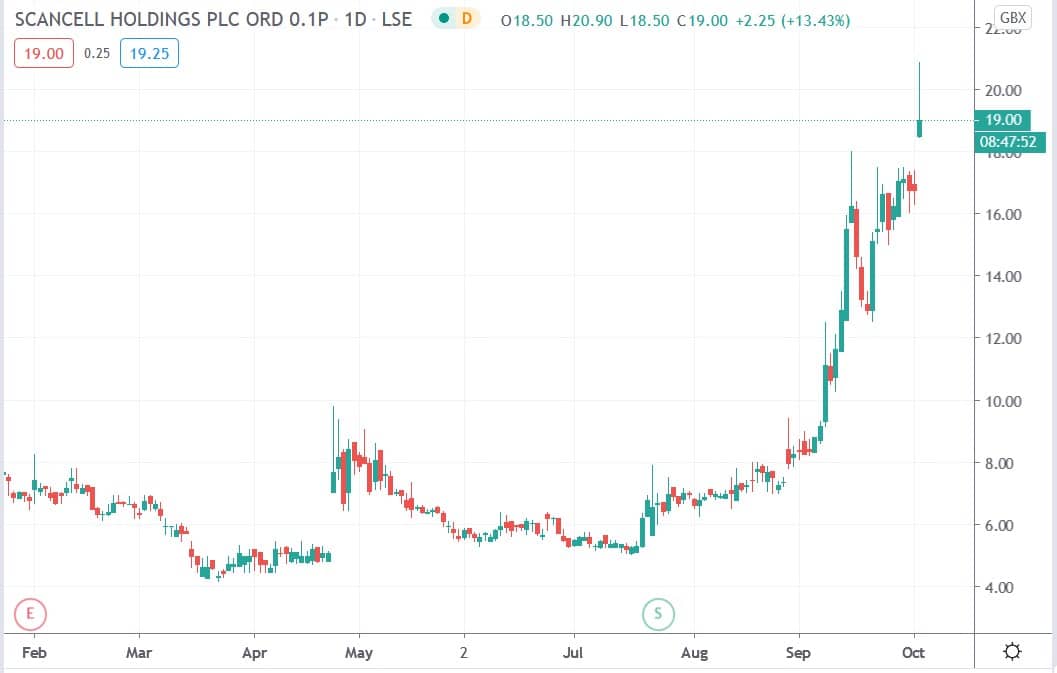 Scancell shares today surged 24.7% to trade at 20.90p having ended Thursday’s session trading at 16.75p.