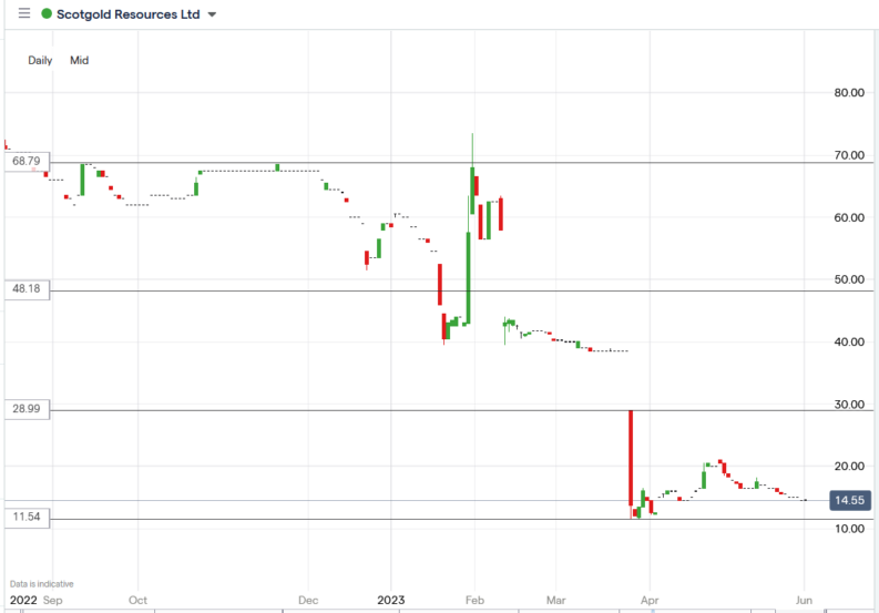 The Scotgold share price fell 2.97% to trade at 14.07p, from Wednesday’s closing price of 14.50p.