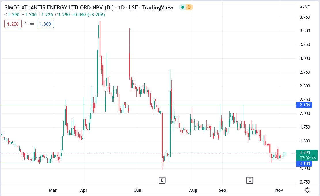 The SIMEC Atlantis (SAE) share price edged 3.2% higher to trade at 1.290p, rising from Monday’s closing price of 1.250p.