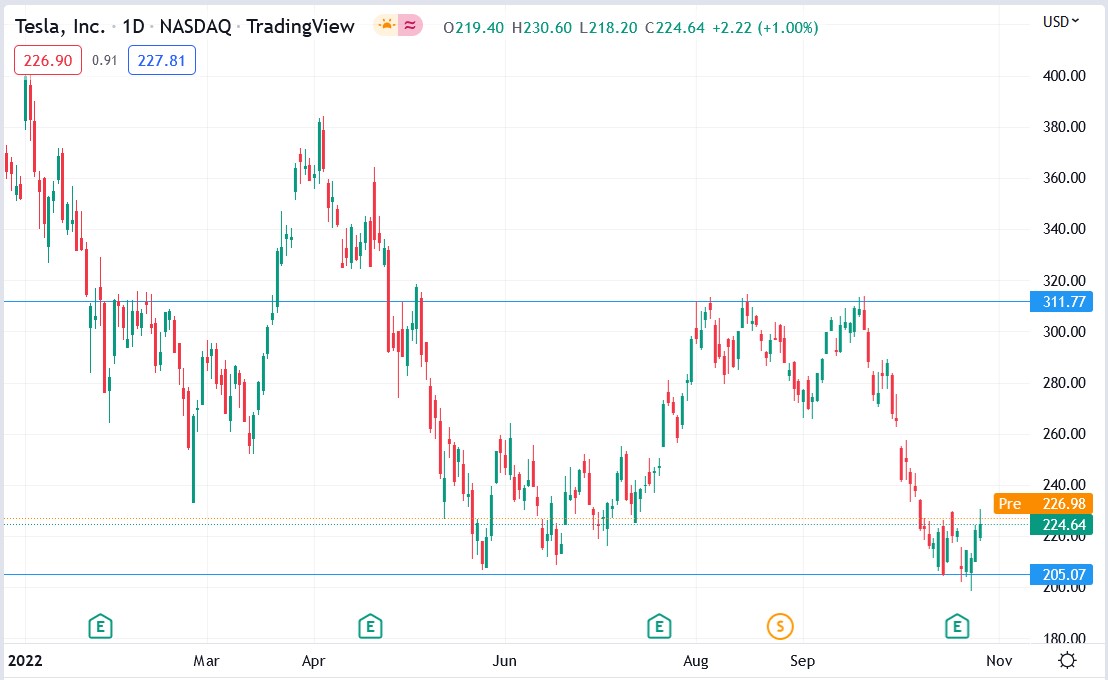 The Tesla stock price bounced off a crucial support level at the start of the week and is currently headed higher.