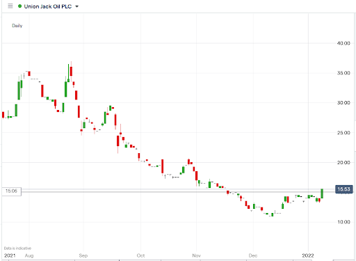 Union Jack Oil shares rallied 15.04% to trade at 15.53p, rising from Monday’s closing price of 13.50p.