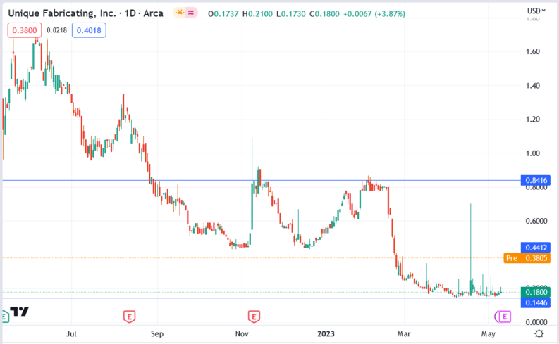 The Unique Fabricating (UFAB) stock price surged 132.78% to trade at $0.42, from Tuesday’s closing price of $0.18.