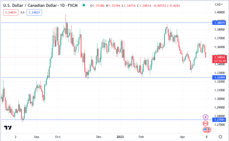 The USDCAD currency pair was trading down 58.7 pips (0.43%) as the Canadian dollar rallied against its US peer.
