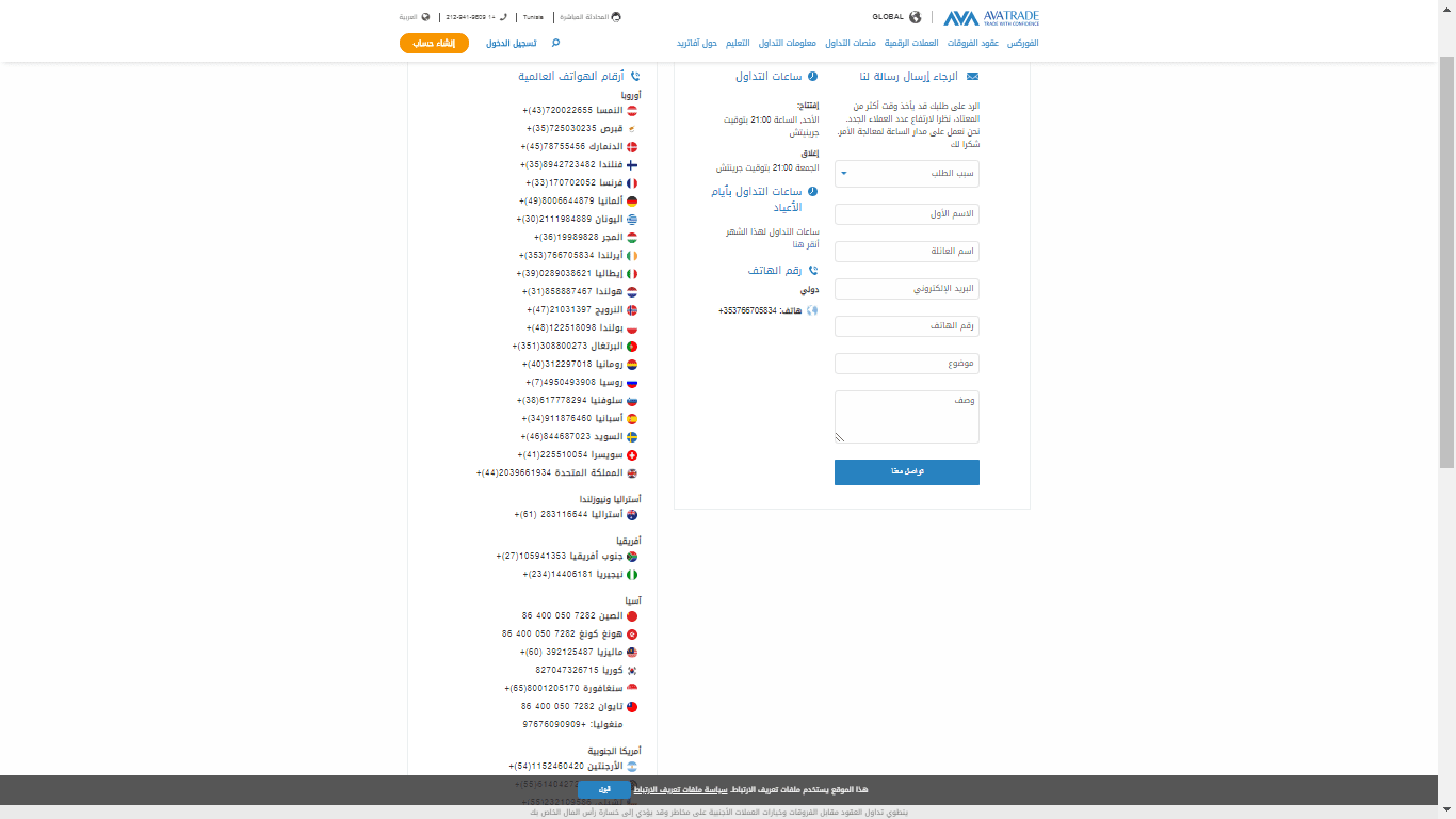 توفر أفاتريد لعملائها مجموعة من خيارات الاتصال للمشكلات الفنية والاستفسارات العامة. وهذا يشمل وظيفة الدردشة الحية ، وأرقام الهواتف المباشرة وصفحة الأسئلة الشائعة. لدى الوسيط أيضًا صفحة اتصال موضحة أدناه مع نموذج حيث يمكنك كتابة طلب الدعم الخاص بك.