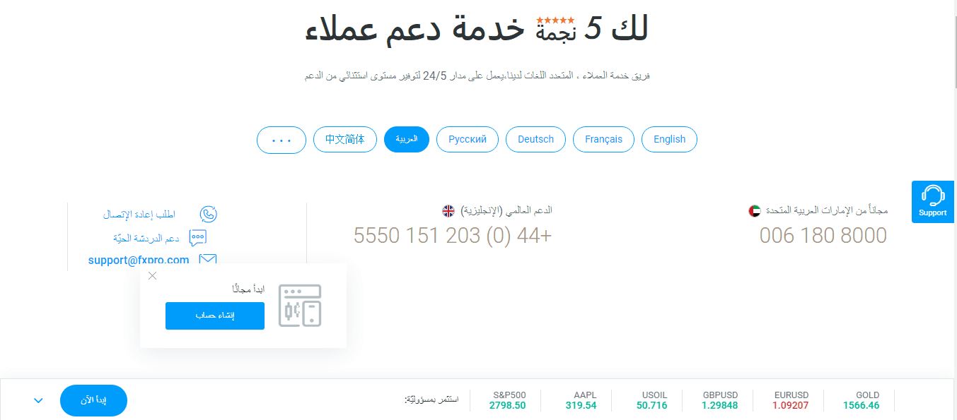 كونه يدعم ما مجموعه 23 لغة أمر مثير للإعجاب وتكون المساعدة متوفرة عادة على مدار 24/5 طوال وقت عمل الأسواق كما هو الحال مع معظم الوسطاء. لقد وجدوا أن أوقات الاستجابة تكون فعالة وأطول فترة انتظار لمعاودة الاتصال حوالي ساعة.