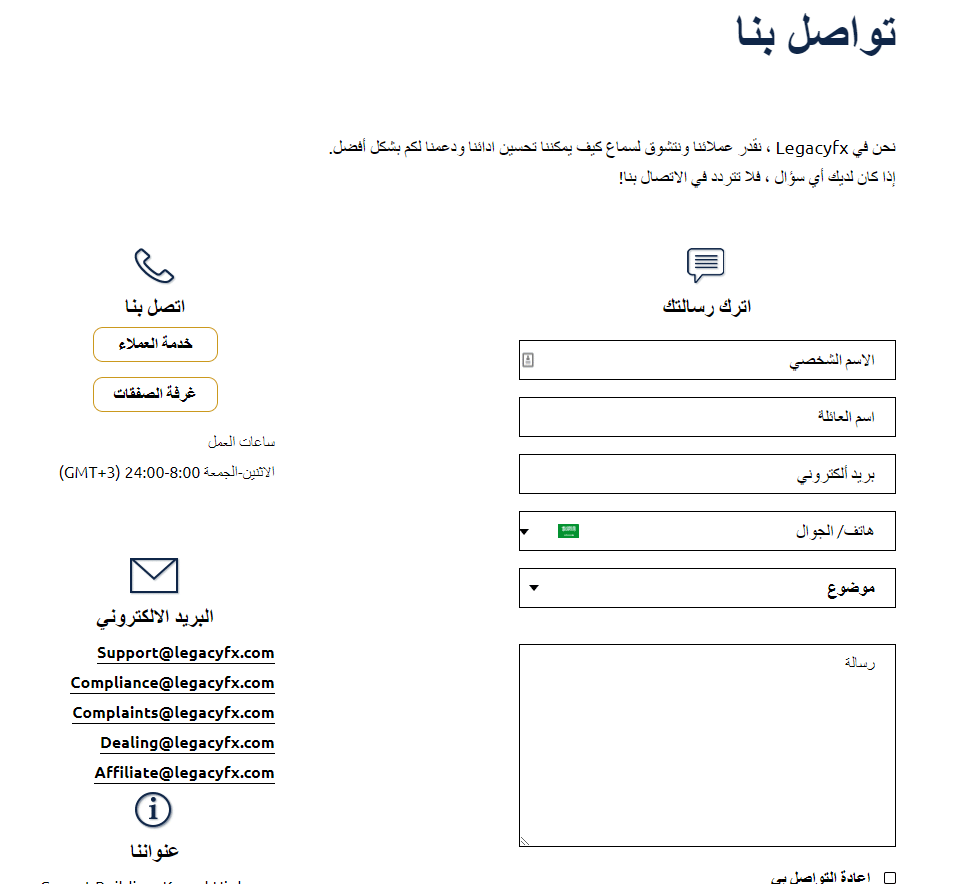 وتشير أغلب تقييمات ليجاسي فوركس إلى أنها تمتلك فريق دعم عملاء يتمتع بمستوى عالٍ من المهنية والاحترافية، وذلك للرد على جميع استفسارات العملاء بإجابات مفيدة على مدار ساعات العمل.