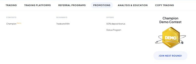 The range of offers available is rather impressive. You can find deposit bonuses, trade and win programs, and trading contests on demo also including cash prizes from time-to-time.