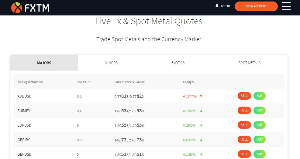 - FXTM provides access to a range of asset groups: 120 currency pairs + 36 commodities + 58 indices + 7 cryptocurrencies + 77 ETFs and 4 bonds