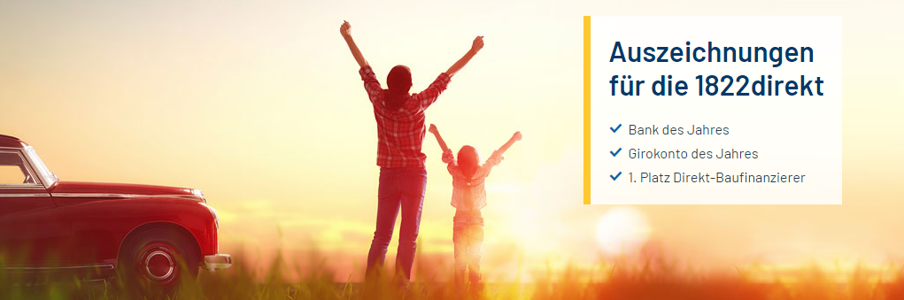 Unter anderem wurde 1822direkt Testsieger bei den Direktbanken im großen Banken-Test des deutschen Instituts für Service-Qualität. Damit wurde nicht nur der Wertpapierhandel bei dem Anbieter ausgezeichnet, sondern auch die kundenfreundlichen anderen Leistungen wie zum Beispiel das Girokonto, die Bausparmöglichkeiten und das Kreditangebot.