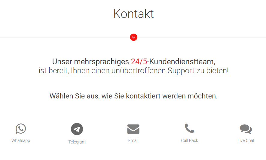 Daneben können die beliebten Chat-Messenger WhatsApp und Telegram verwendet werden, auch per E-Mail bzw. Kontaktformular ist BDSwiss erreichbar, und auf der Website wird ein Live-Chat Modul angeboten. Letzteres ist offenbar durch ein überwiegend englischsprachiges Team besetzt.