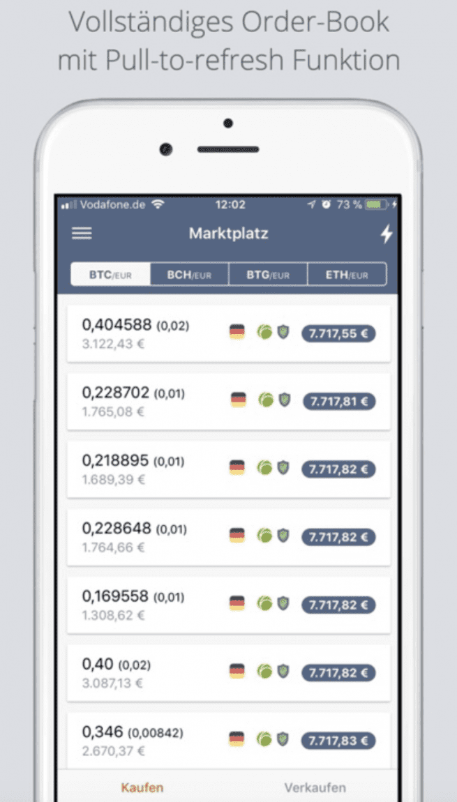 Die Schwelle orientiert sich an dem sogenannten Trust-Level der einzelnen Nutzer. Sie starten mit 2.000 Euro für Kauf und Verkauf sowie mit 5.000 Euro für Auszahlungen auf dem niedrigsten Level. Das Einzahlen von Echtgeld ist für den Handel auf Bitcoin.de nicht notwendig. Die Überweisungen erfolgen direkt an den Verkäufer.